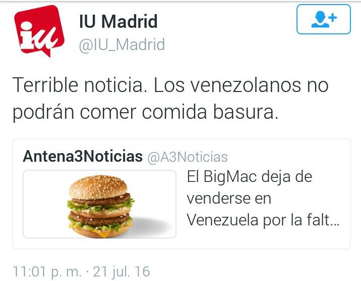 24 de julio, 2016 izquierda unida Published 24 de julio, 2016 at 716 × 556 in Hola ¿Izquierda? ¿Unida?. Relacionado « Previous Image Next Image » Deja un comentario Cancelar respuesta Tu dirección de correo electrónico no será publicada. Los campos obligatorios están marcados con *Comentario Nombre * Correo electrónico * Web Escribe el texto de la imagen Recibir un email con cada nueva entrada.